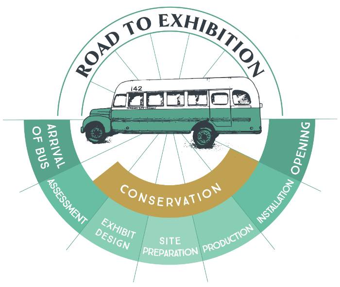 Check out the complicated process of balancing the preservation of existing elements while repairing and restoring lost components. In addition to the safety of our visitors, the long-term care of the bus and associated collections is our number one priority.