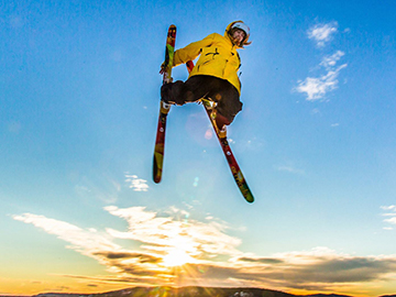 by means of skiing, biking, running, climbing, and basking in the sun:)