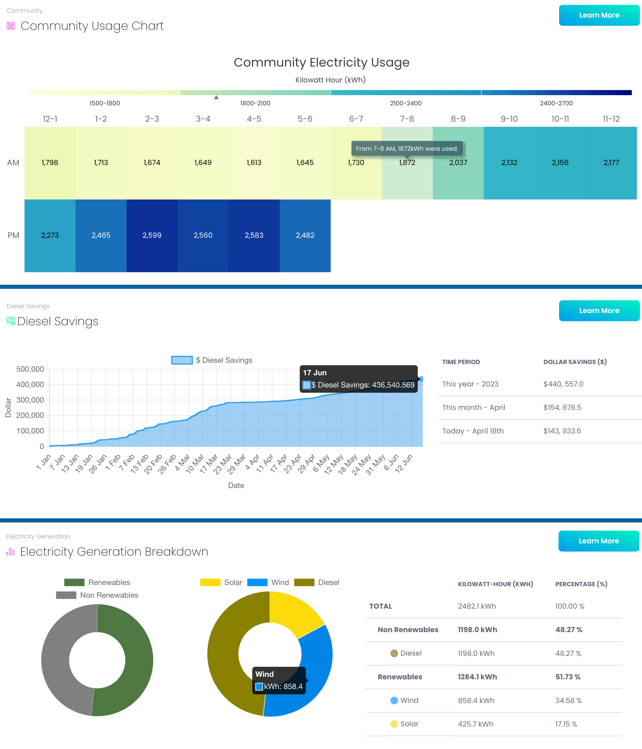 - Nathan Green, who is becoming an expert in Kotzebue and Cordova’s energy utility data, helped them understand how to get hourly data for the balance of renewables and non-renewables to feed into their data visualizations in the app
