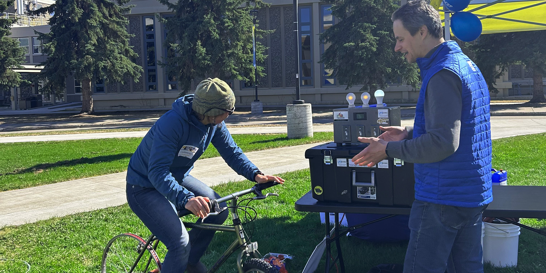 Tom Marsik led a bicycle generator activity. As participants pedaled the bicycle, different types of bulbs lit up to monitor wattage output. A friendly competition started as attendees tried to top the wattage leaderboard throughout the open house.
