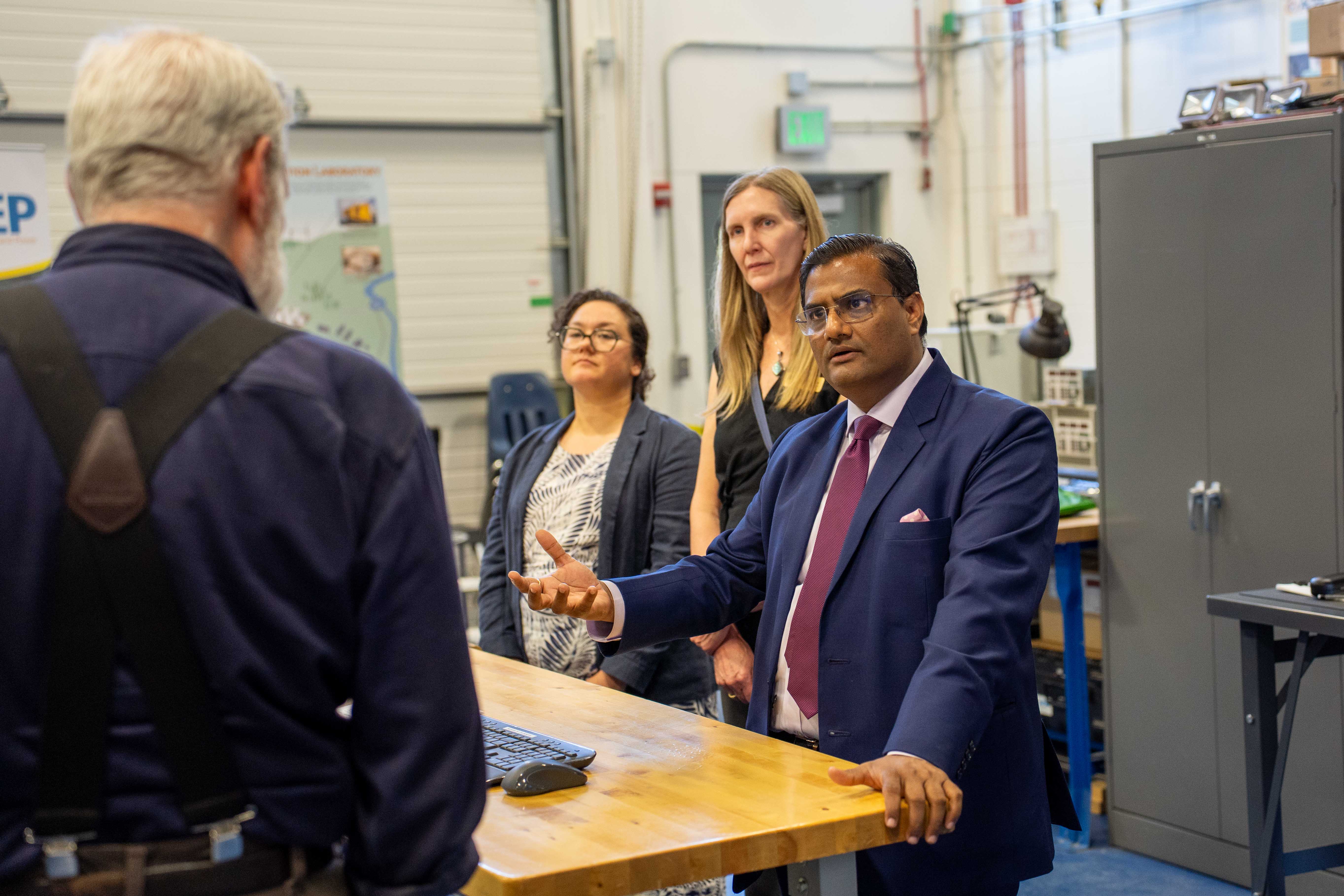 Consul General of India Prakash Gupta asks ACEP Energy Facility Technology Manager David Light questions during his visit. On Gupta’s right stand UAF Vice Chancellor of Research Laura Conner and ACEP Deputy Director for Strategic Initiatives Leasi Vanessa Lee Raymond.