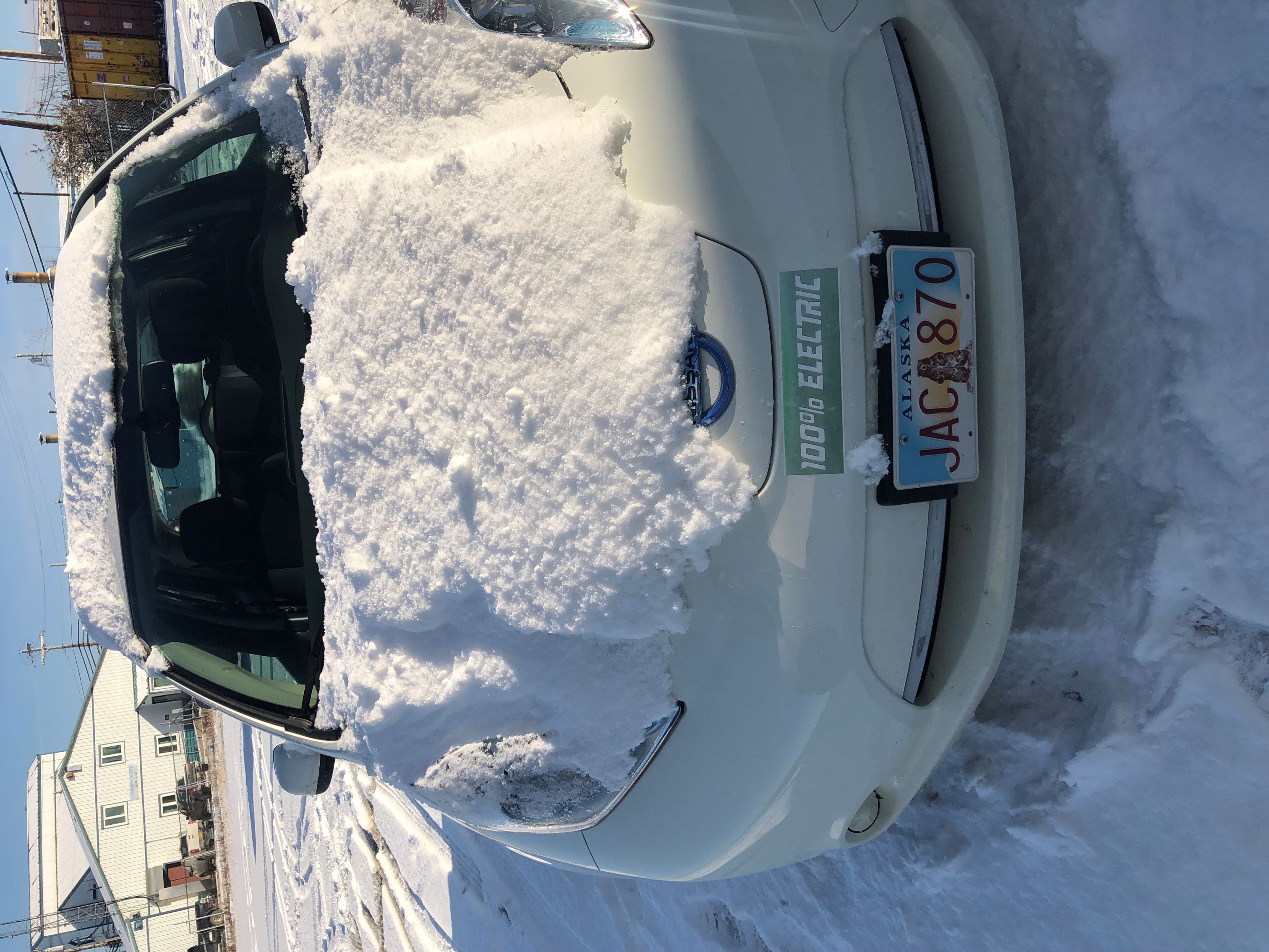 Kotzebue Electric Association’s Nissan Leaf is parked in the middle of winter.