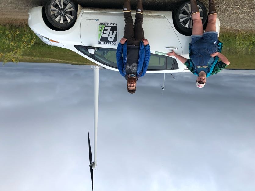 2021 ACEP interns stand by an electric vehicle at the Kotzebue wind farm.