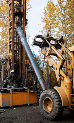 Photo Caption: Casing is maneuvered over the hole and welded together.