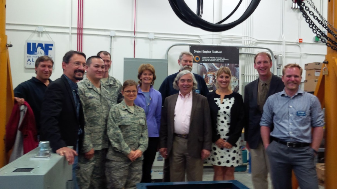 US Secretary of Energy, Dr. Ernest Moniz, and US Senator Lisa Murkowski paid a visit to ACEP’s Energy Technology Facility at UAF’s campus on August 17. They were in town for the Chena Hot Springs Renewable Energy Fair. Other visitors included Gene Therriault of AEA, Clay Koplin of Cordova Electric Cooperative, and Lt. Colonel Crowley, Major Toole, and Major Lovett of the US Alaskan Command also attended the tour.