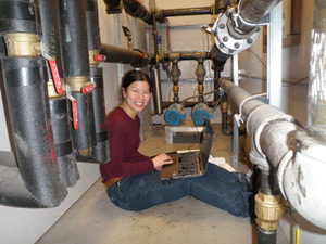 Photo Caption: ACEP Research Engineer, Daisy Huang, downloads temperature data from her installed BTU meters in Gulkana.