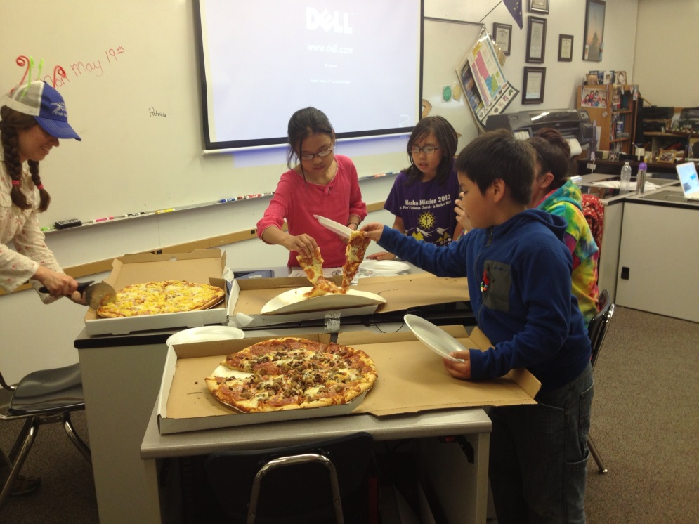 Angoon children enjoying a pizza party provided to them for participating in the 2014 KidWind Challenge. Photo courtesy of Jim Parkin.