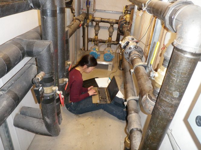Photo: Daisy Huang shown collecting boiler data in Gulkana last December. Photo courtesy of D. Huang, ACEP/UAF.