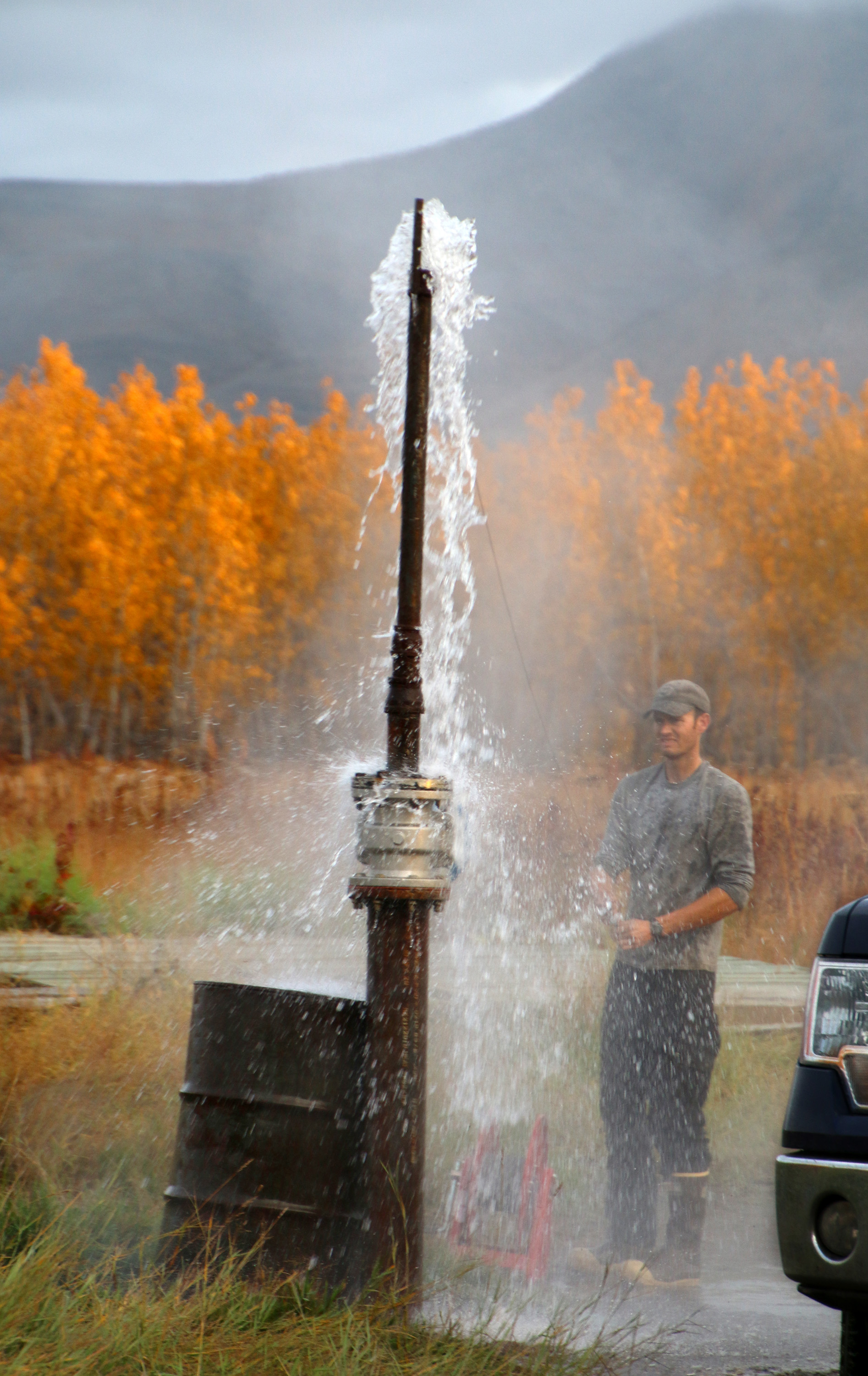 Chris Pike traveled to Nome and Pilgrim Hot Springs along with geologist Dick Benoit. They collected a final set of temperature logs in all the accessible wells drilled at Pilgrim Hot Springs since 1979. The temperature logs were collected to monitor the geothermal system for subtle temperature changes over time. During this visit, flow testing exercises were also conducted in several wells. The most significant testing occurred in PS13-1, drilled last summer. Over 300 gallons per minute of water were pumped from the well, about five times the natural artesian flow. During this time the well was monitored for pressure and temperature changes. Gwen Holdmann also traveled to Nome for part of the trip. Gwen met with regional project partners to deliver a project update and discuss future development options.