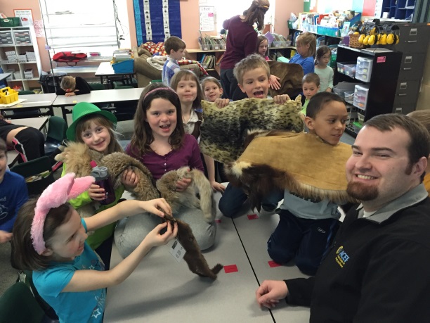 The ACEP Outreach Team paid a visit to Ms. Haas’ 1st grade class at the Watershed Charter School in Fairbanks last Friday. As part of the AK Energy Smart Curriculum, Outreach and Marketing Manager Melody Cavanaugh-Moen led a presentation focused on energy efficiency by examining how animals and people stay warm during the Alaska winter. As part of the visit, a collection of Arctic animal fur samples was brought along from the University of Alaska Museum of the North. With the help of Program Assistants Marcia Cassino and Max Frey, the furs were presented to the children in small groups so they could see each sample up close.