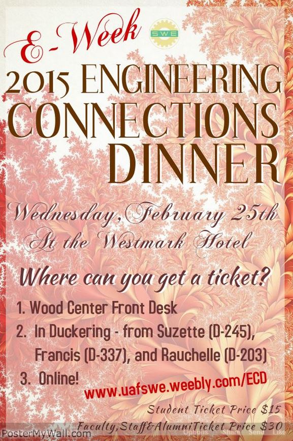 To register for this event or learn more, visit http://uafswe.weebly.com/engineering-connections-dinner-2015.html.