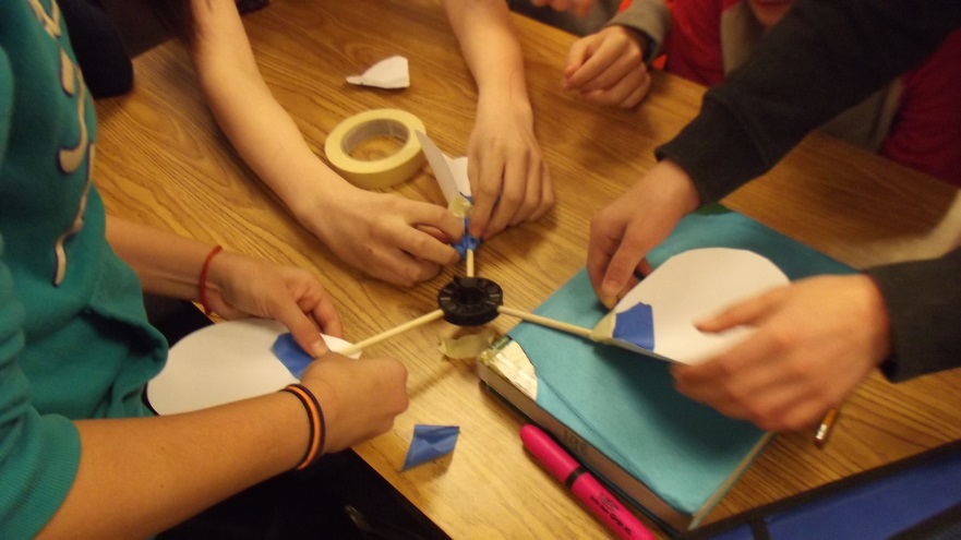 Photo: Randy Smith Middle School students create their own wind turbine blades to test. Photo courtesy C. Pastro, Randy Smith Middle School.