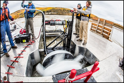 Later in the day, well known UAF photographer Todd Paris paid AHERC a visit as well. He traveled to Nenana to be onsite during Oceana’s testing of their unique in-river turbine design and to gather more photos of research being conducted by UAF researchers.