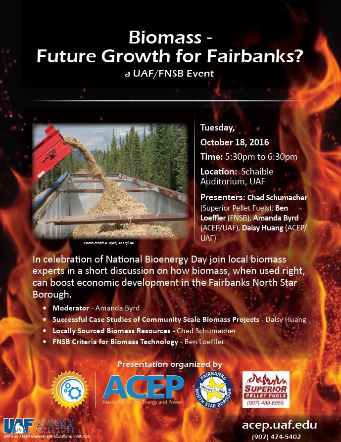 In celebration of National Bioenergy Day join local biomass experts in a short discussion on how biomass, when used right, can boost economic development in the Fairbanks North Star Borough.