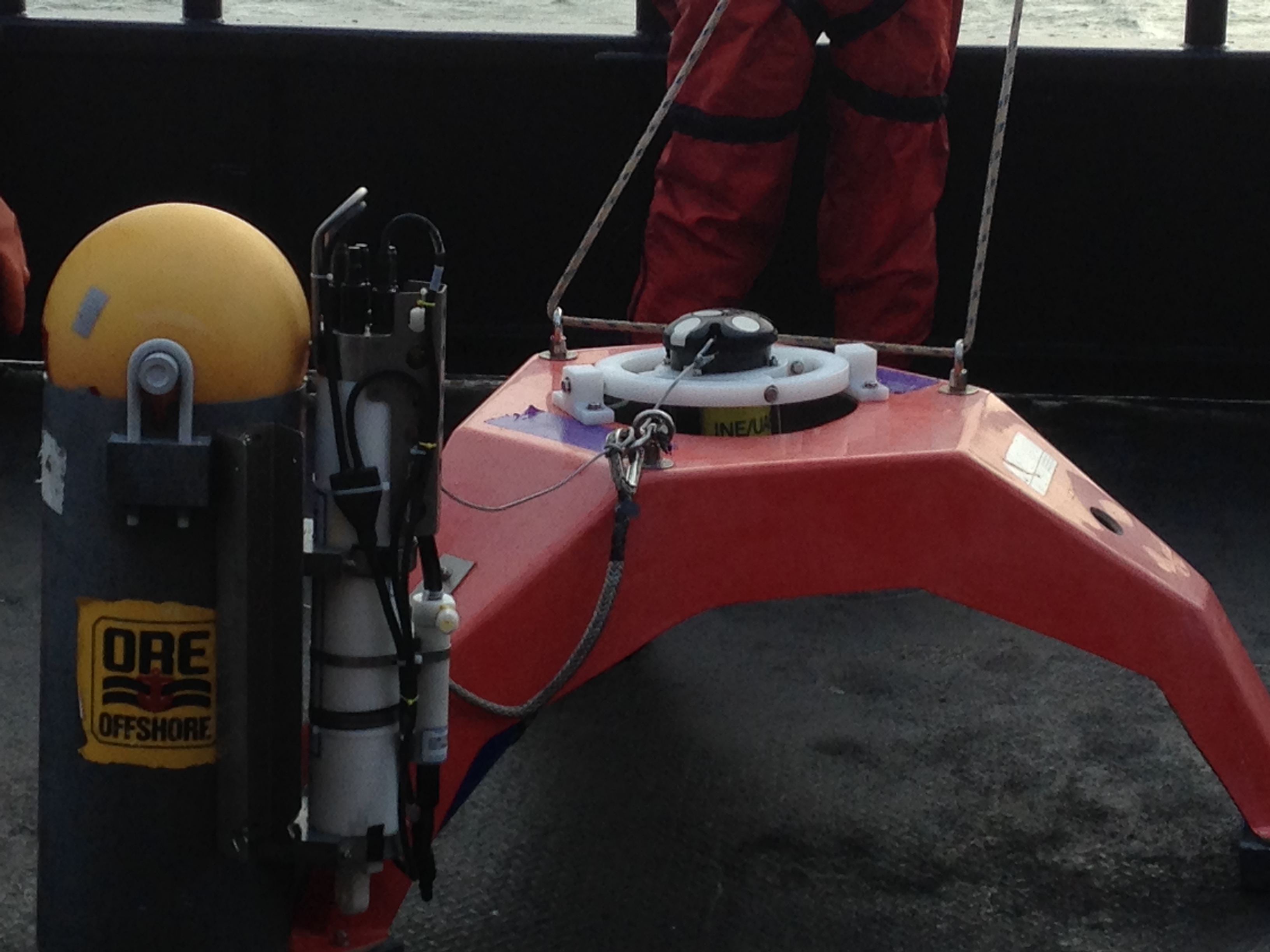 Photo of oceanographic mooring. Credit J. Kasper, ACEP/UAF.