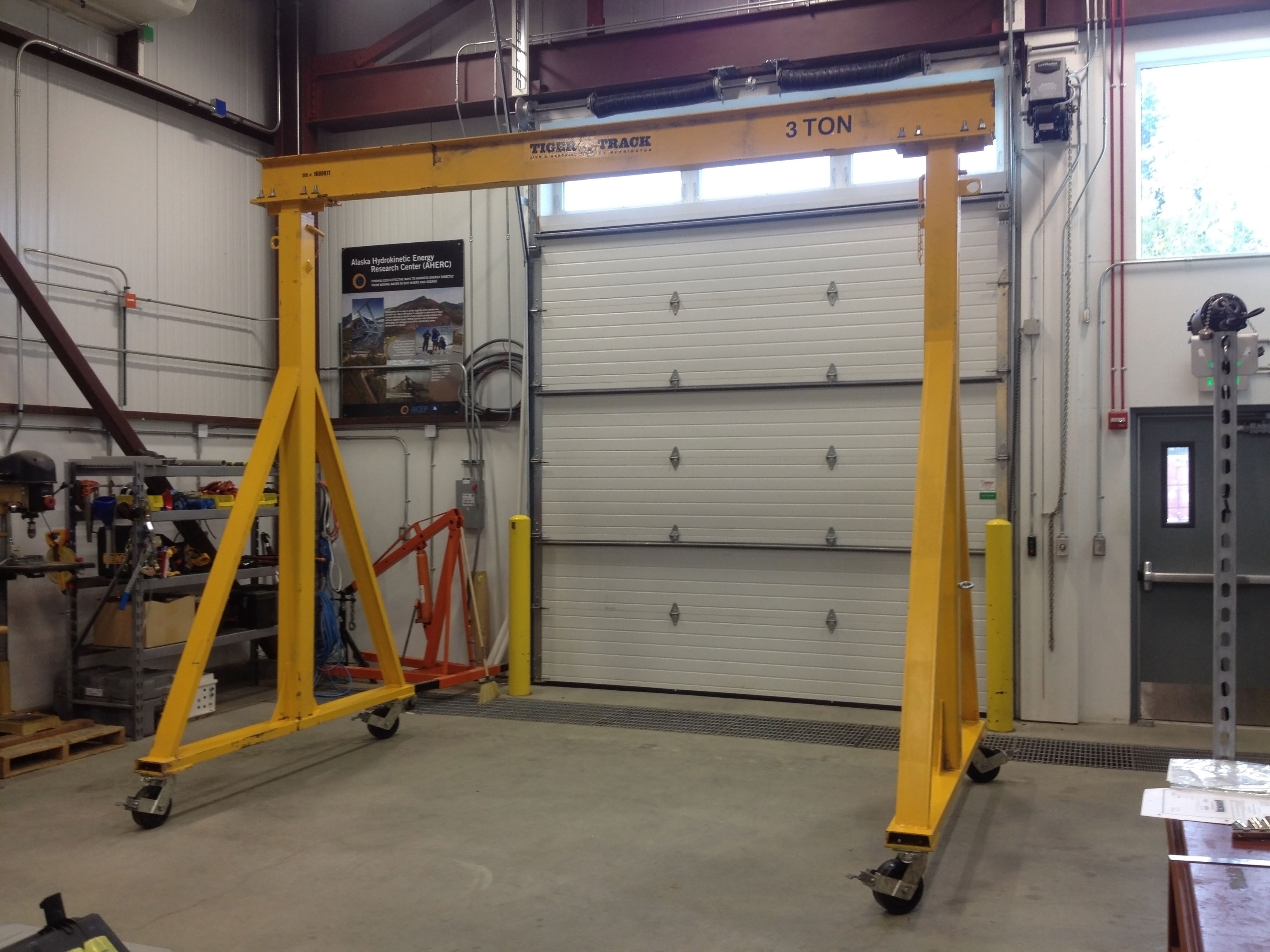 ACEP has increased their capabilities with the addition of a 3-ton gantry crane. Located in the hydrokinetics bay of the Energy Technology Facility the crane will allow the ACEP team to perform many heavy lifting jobs in house.