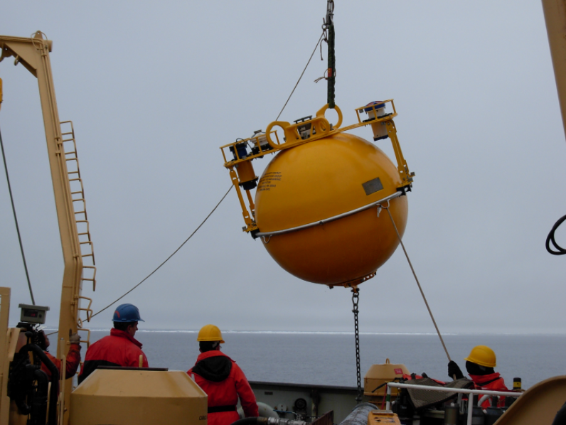 A research team deploys a mooring float equipped with a wave-measuring instrument in the Beaufort Sea (part of the Arctic Ocean north of Alaska). Photo by AGU Blogosphere - American Geophysical Union