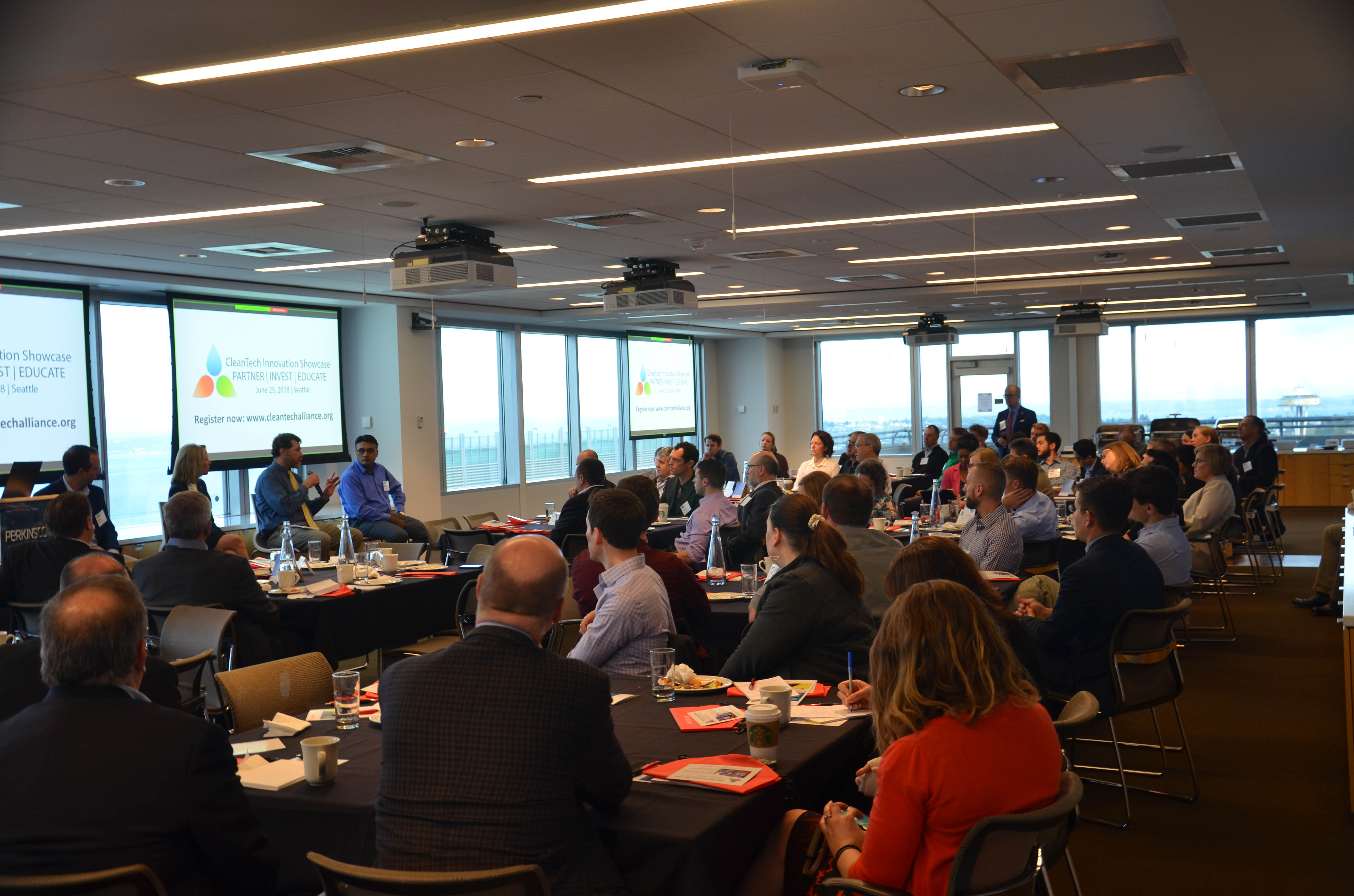 Jeremy Kasper shares a response at the CleanTech Alliance Breakfast Series meeting on May 9 in Seattle. Photo courtesy of UAF.