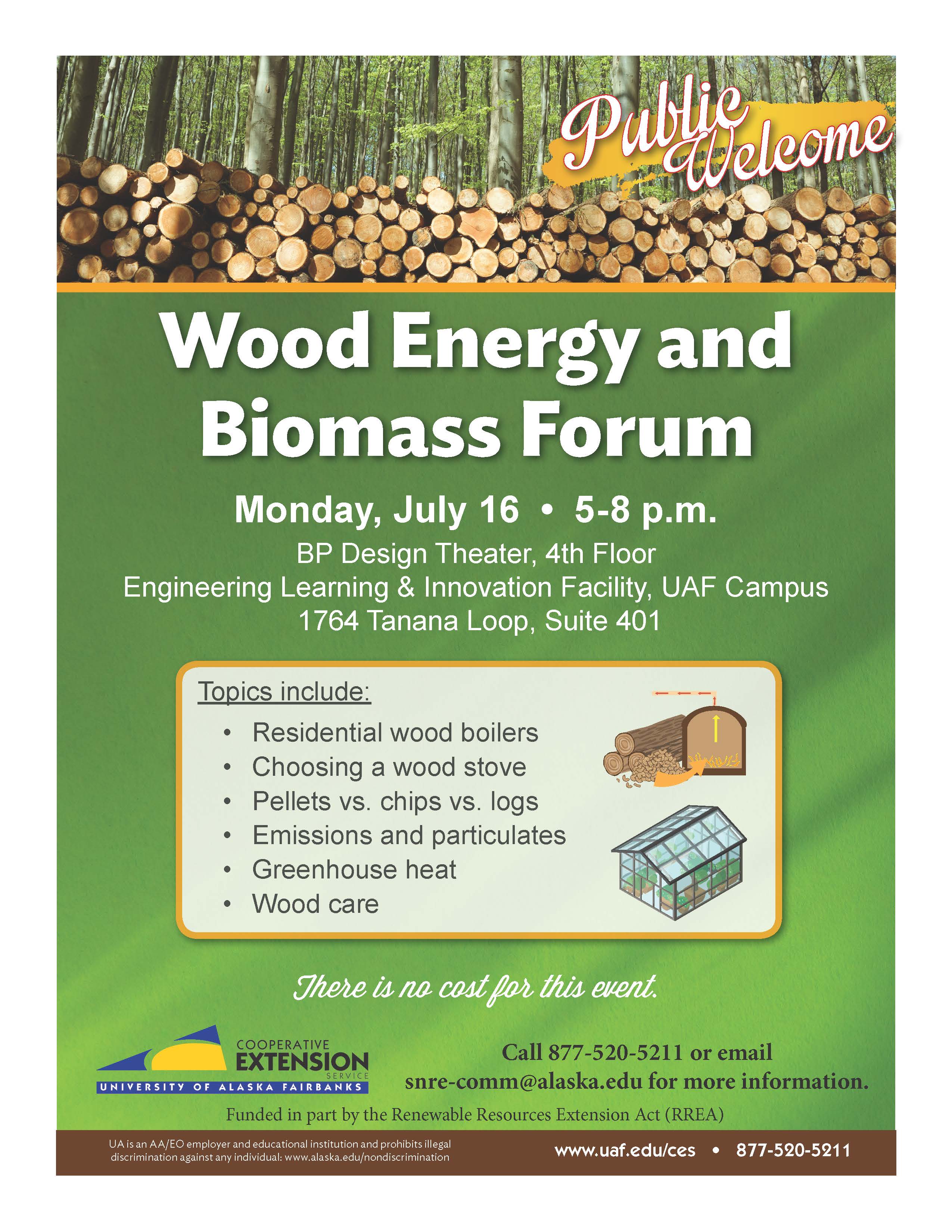 UAF Cooperative Extension Service energy specialist Art Nash will host a Wood Energy and Biomass Forum on Monday, July 16, from 5-8 p.m. at the the BP Design Theater on the fourth floor of the Engineering Learning and Innovation Facility.
