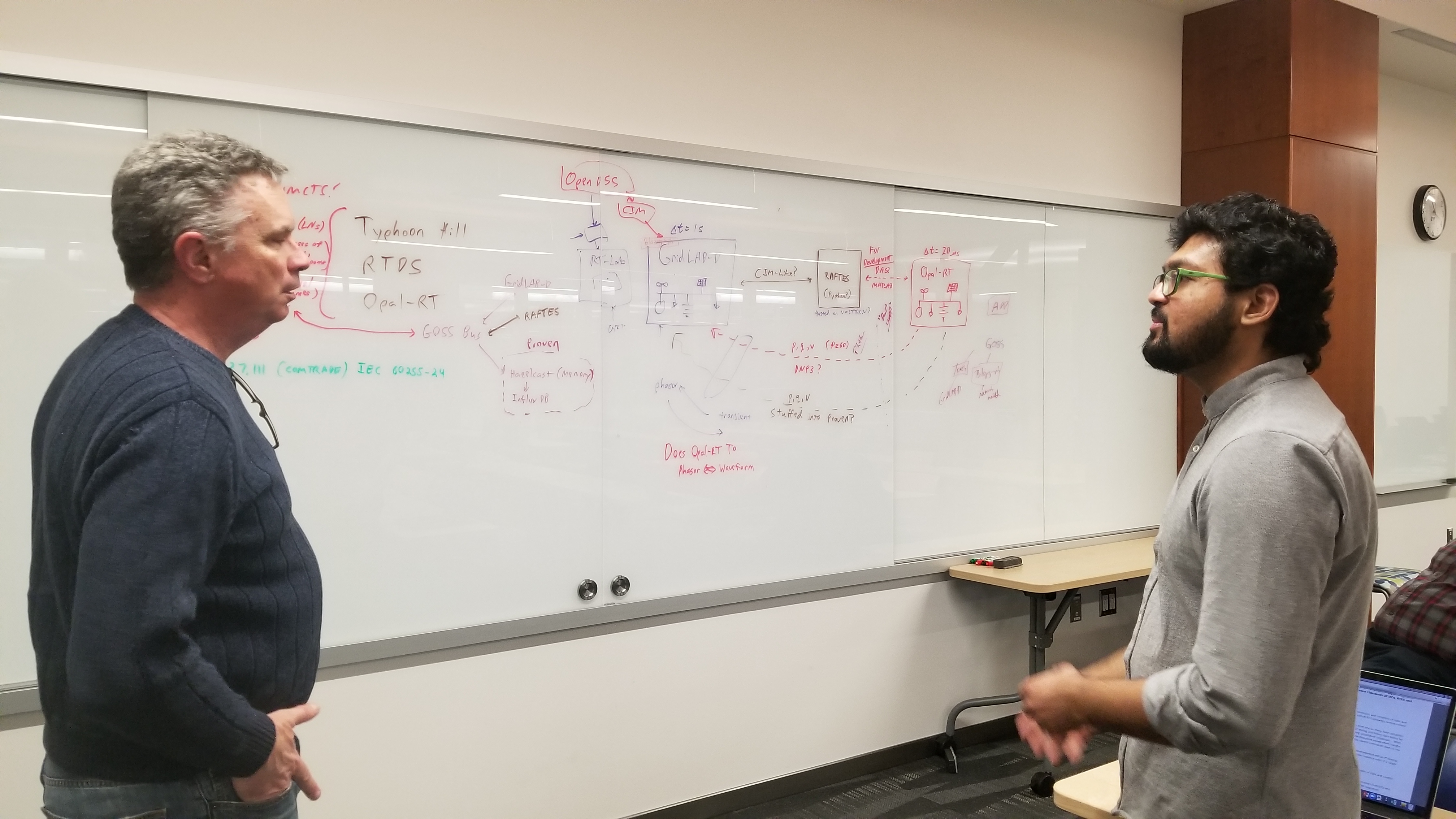 Pacific Northwest National Lab researchers Ron Melton, Tom McDermott and Craig Allwardt visited UAF and ACEP this week. They discussed progress and integration strategies for an energy management and optimization application being developed at UAF for an open-source advanced distribution management platform, GridAPPS-D, under development at PNNL.
