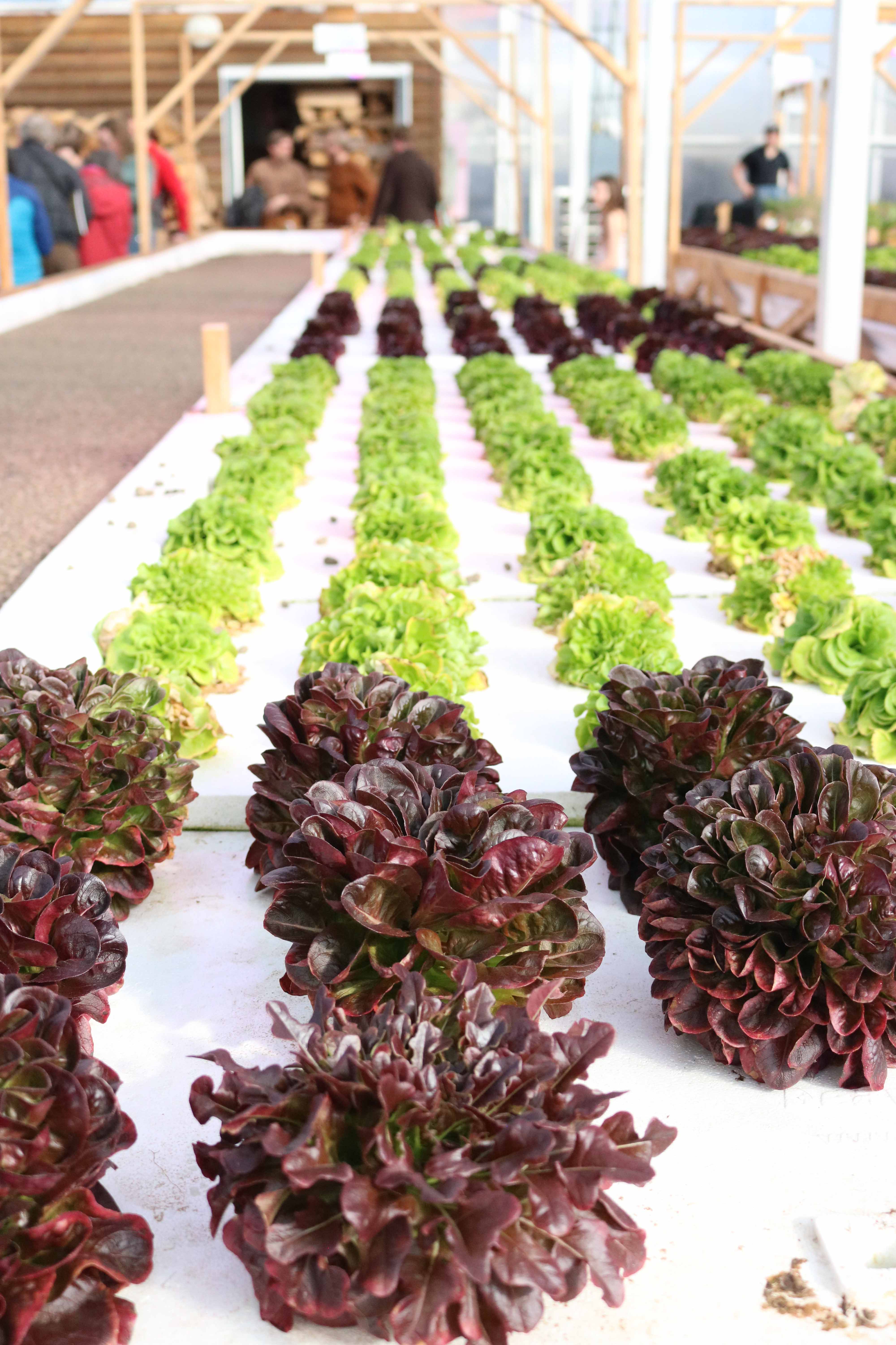 Lettuce grow in a hydroponic greenhouse heated by a woodfired boiler in Coffman Cove, Alaska. Photo by Amanda Byrd.