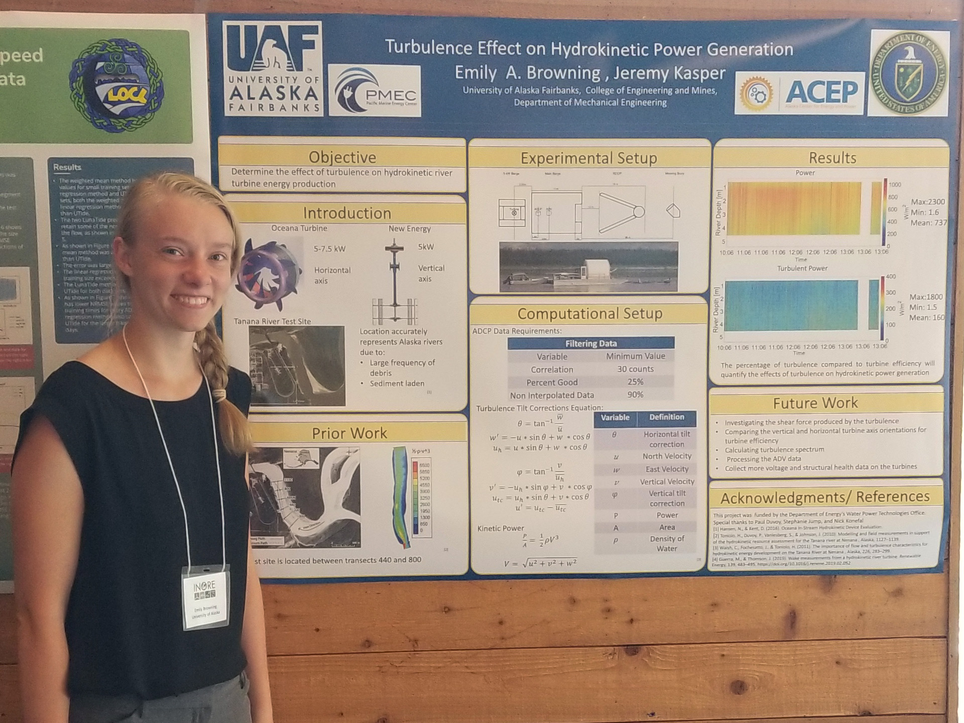 ACEP summer intern Emily Browning attended the International Network on Offshore Renewable Energy Symposium July 9-12 in Victoria, Canada. She presented a poster on hydrokinetic river turbines in Alaska and networked with many other students and professionals in the offshore renewable energy field.