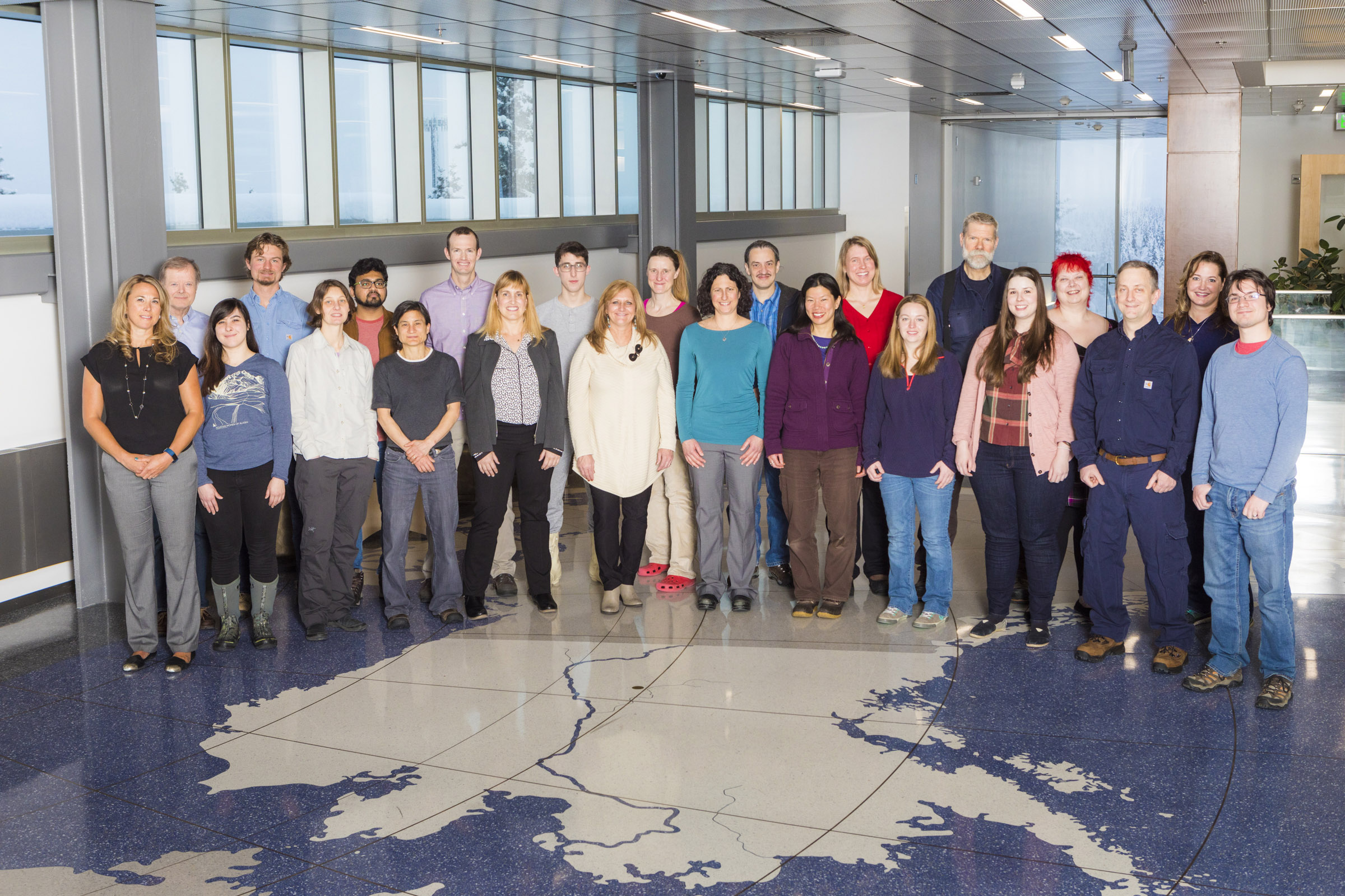 The ACEP team stands in the atrium of the ELIF 4th floor. UAF photo by JR Ancheta.