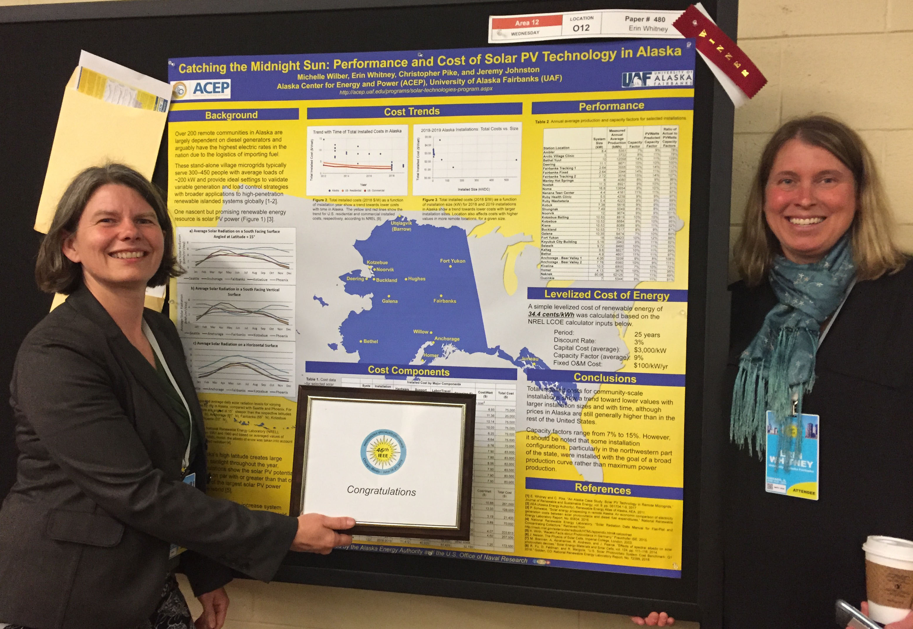 They won a poster prize for their poster “Catching the Midnight Sun: Performance and Cost of Solar Photovoltaic Technology in Alaska.”