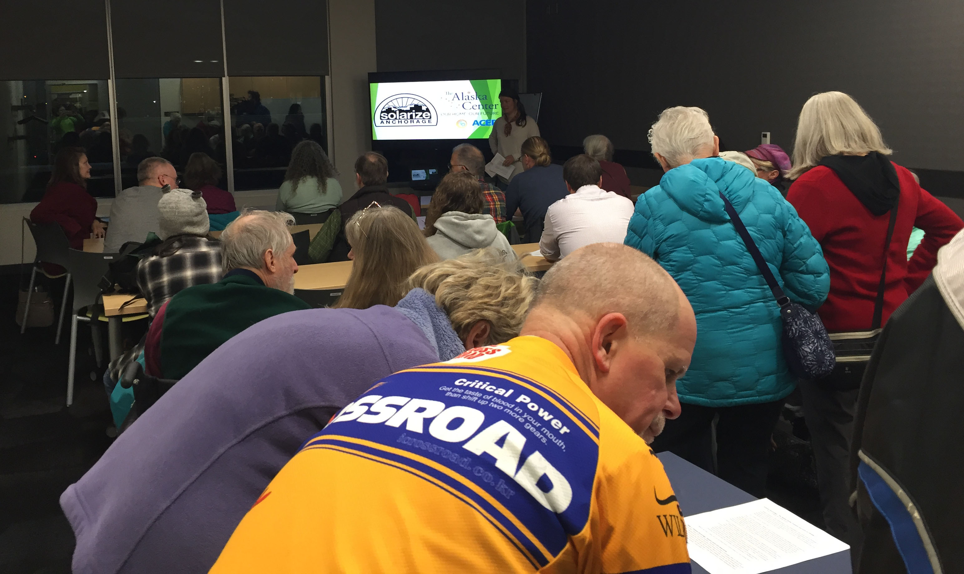 The Solarize Anchorage 2020 campaign kicked off on Nov. 4 with a packed house at the Loussac Library.