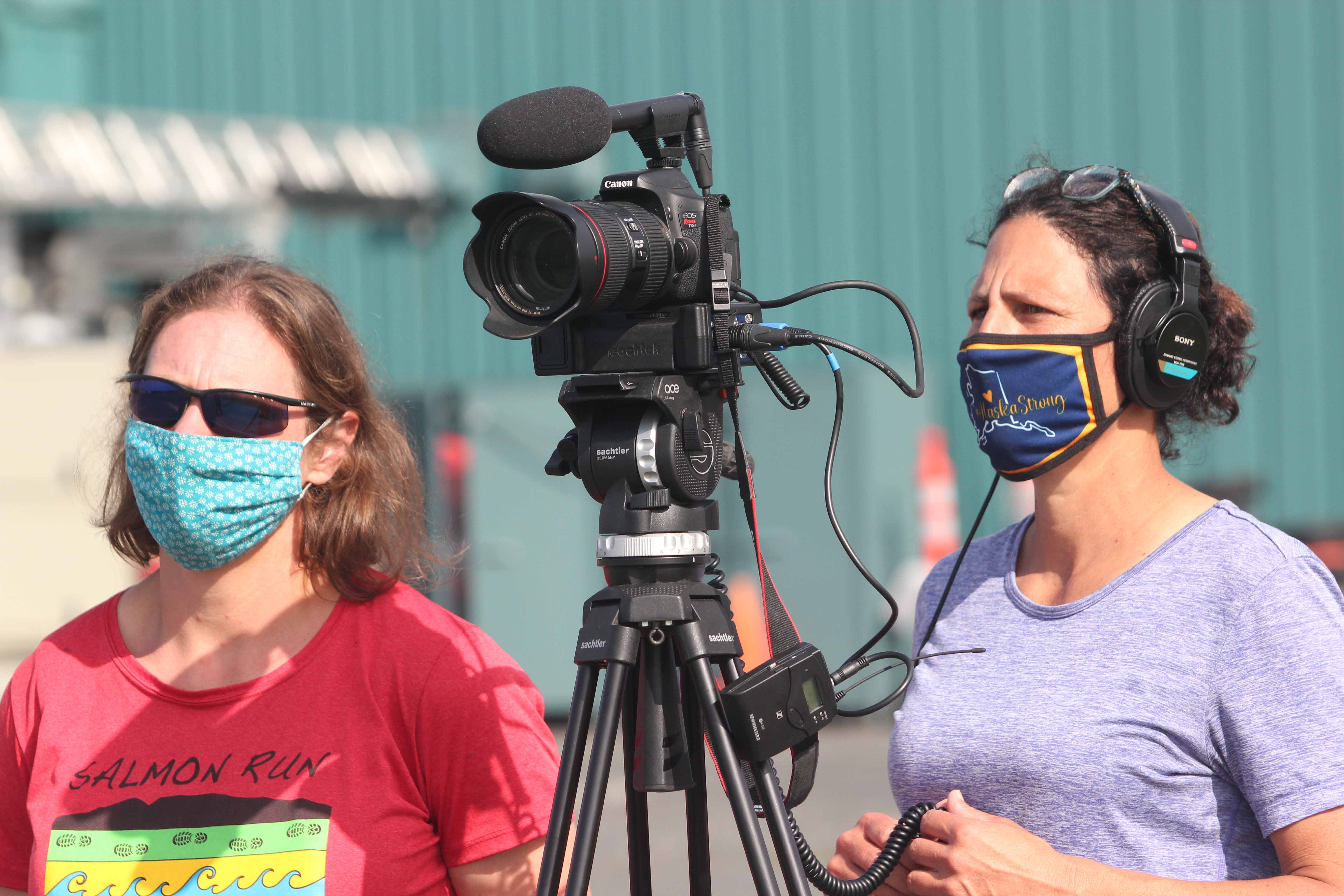 Jennifer Schmidt (l) and Amanda Byrd (r) during an interview for the film. Photo by Mike Mathers.