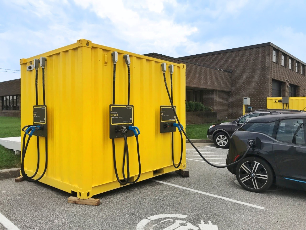 An eCamion battery-tied station charges an electric vehicle in Anchorage. Photo courtesy of Pierce Schwalb, Municipality of Anchorage.