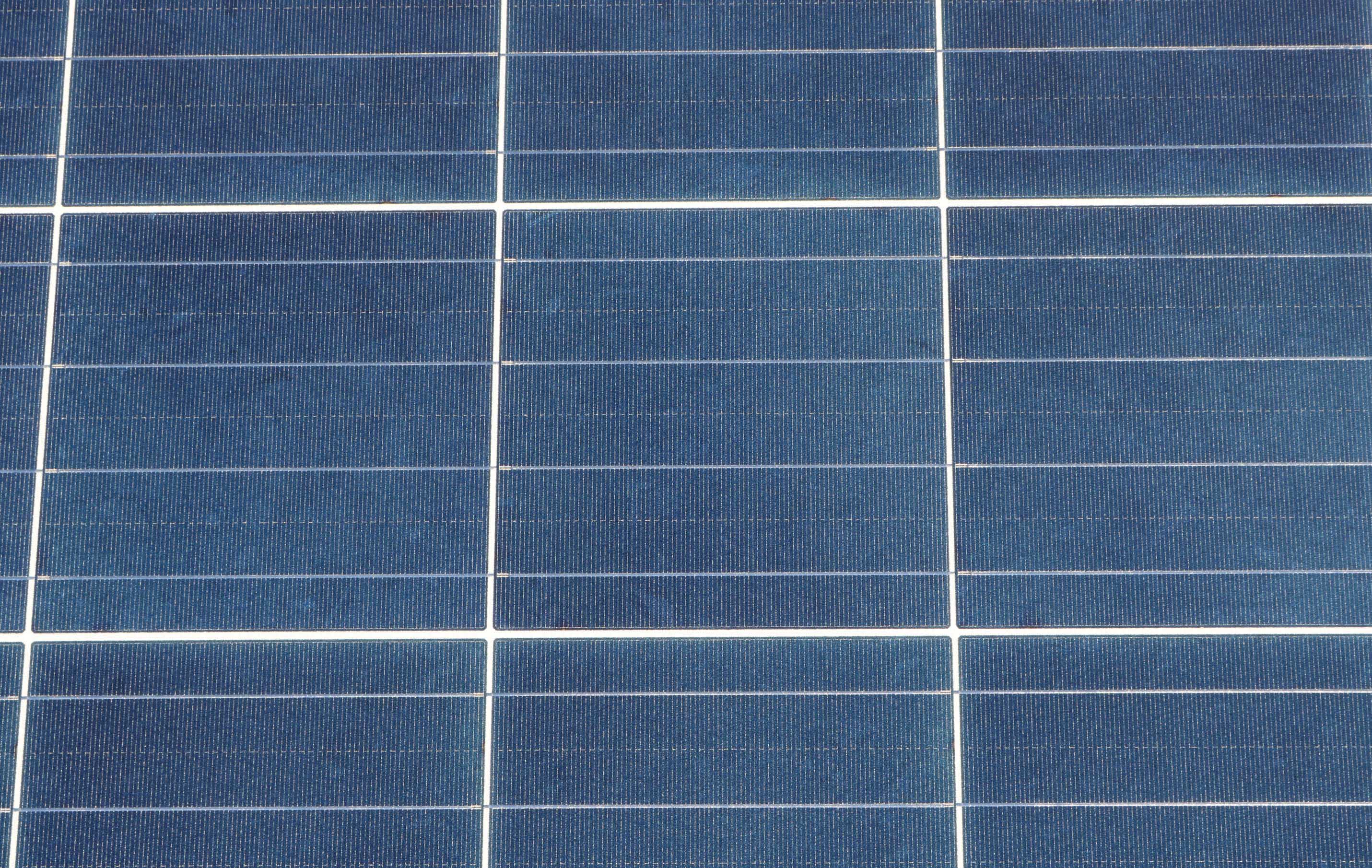 A close-up view of a solar photovoltaic panel. Photo by Amanda Byrd.