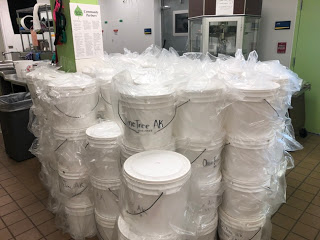 Birch sap kits with buckets, tap, drill bit and instructions await pickup at the OneTree STEAM studio at Lola Tilly Commons. Photo courtesy of UAF Cooperative Extension.