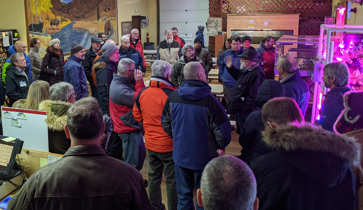 Chena Hot Springs Resort owner Bernie Karl leads a tour while explaining the importance of food independence and renewable energy systems during the Thermal Energy Systems Resilience in Cold/Arctic Climates forum. Photo by Dayne Broderson.