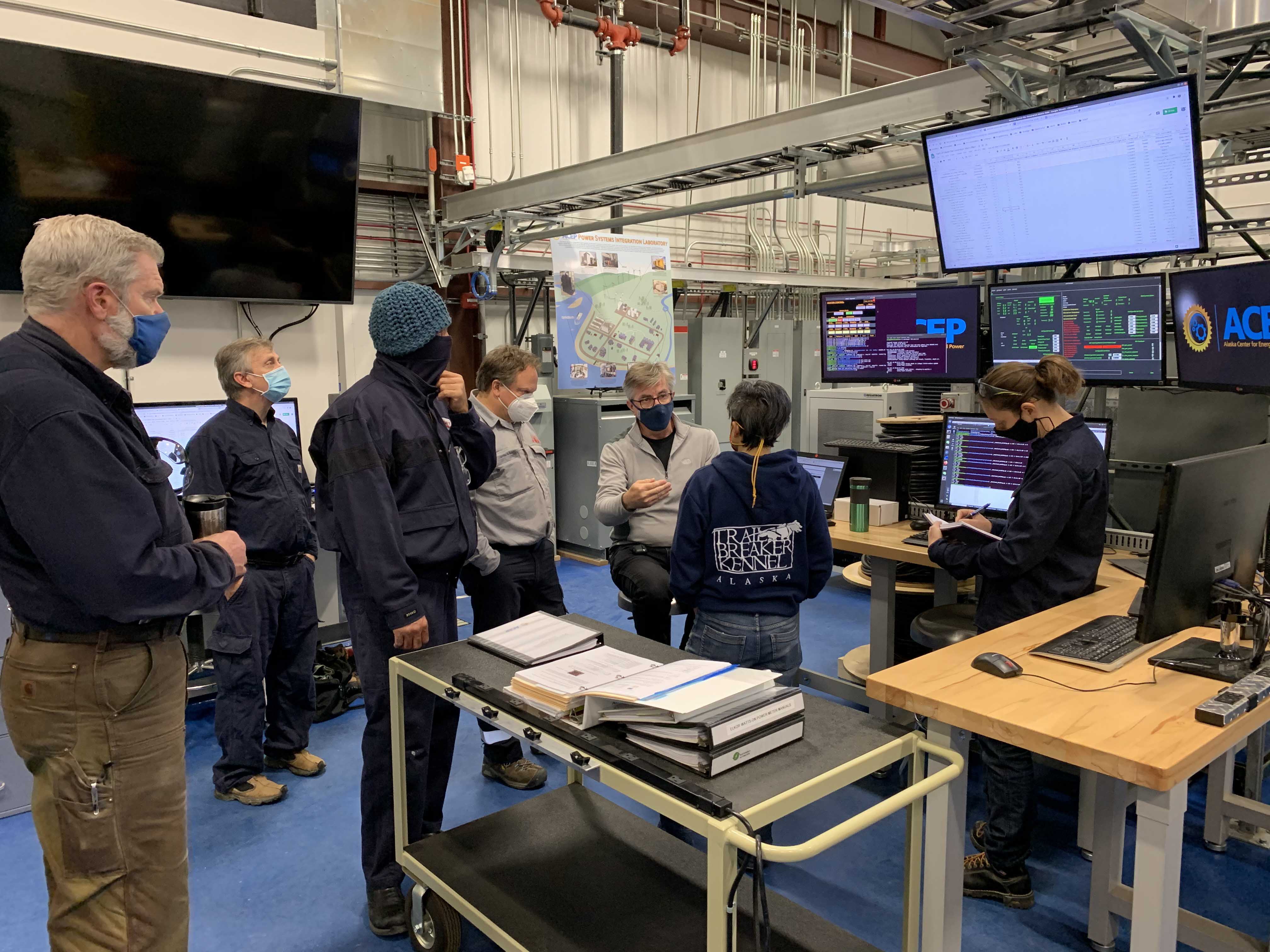 Power Systems Integration team members work with representatives from Saft and ABB/Hitachi to bring the new battery online. Photo by Rob Bensin.