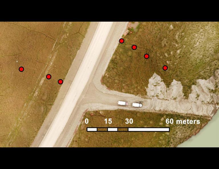 ACEP’s Erin Trochim is among 13 authors of a recently published paper that focused on a portion of the Dalton Highway on Alaska’s North Slope about 10 miles south of the Prudhoe Bay oil fields. Sensors monitored the temperature at seven locations, three to the west of the highway and four on the east.