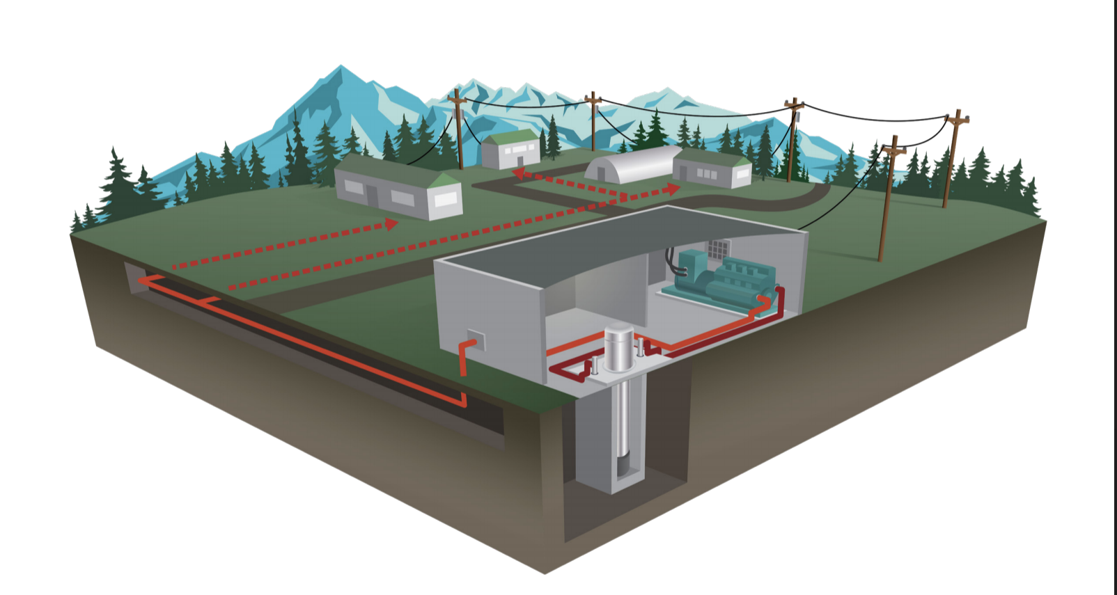 An artist’s depiction of what a small nuclear power plant in Alaska might look like. Image by ACEP and UAF Geophysical Institute.