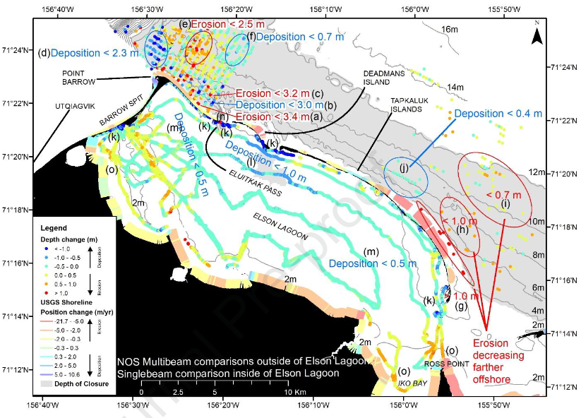 Erosion rates along Alaska’s Beaufort Sea coast are among the highest in the world. Rapidly receding sea ice, an increase in permafrost thawing and warming of ocean and air temperatures have all attributed to the dramatic erosion. These bathymetric changes are causing negative impacts on neighboring communities, industrial and military infrastructure and wildlife habitat.