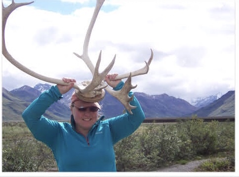 Skye Greer tests out a hand-me-down pair of antlers at the Toklat River rest stop in Denali National Park. Photo by Niki Marineau