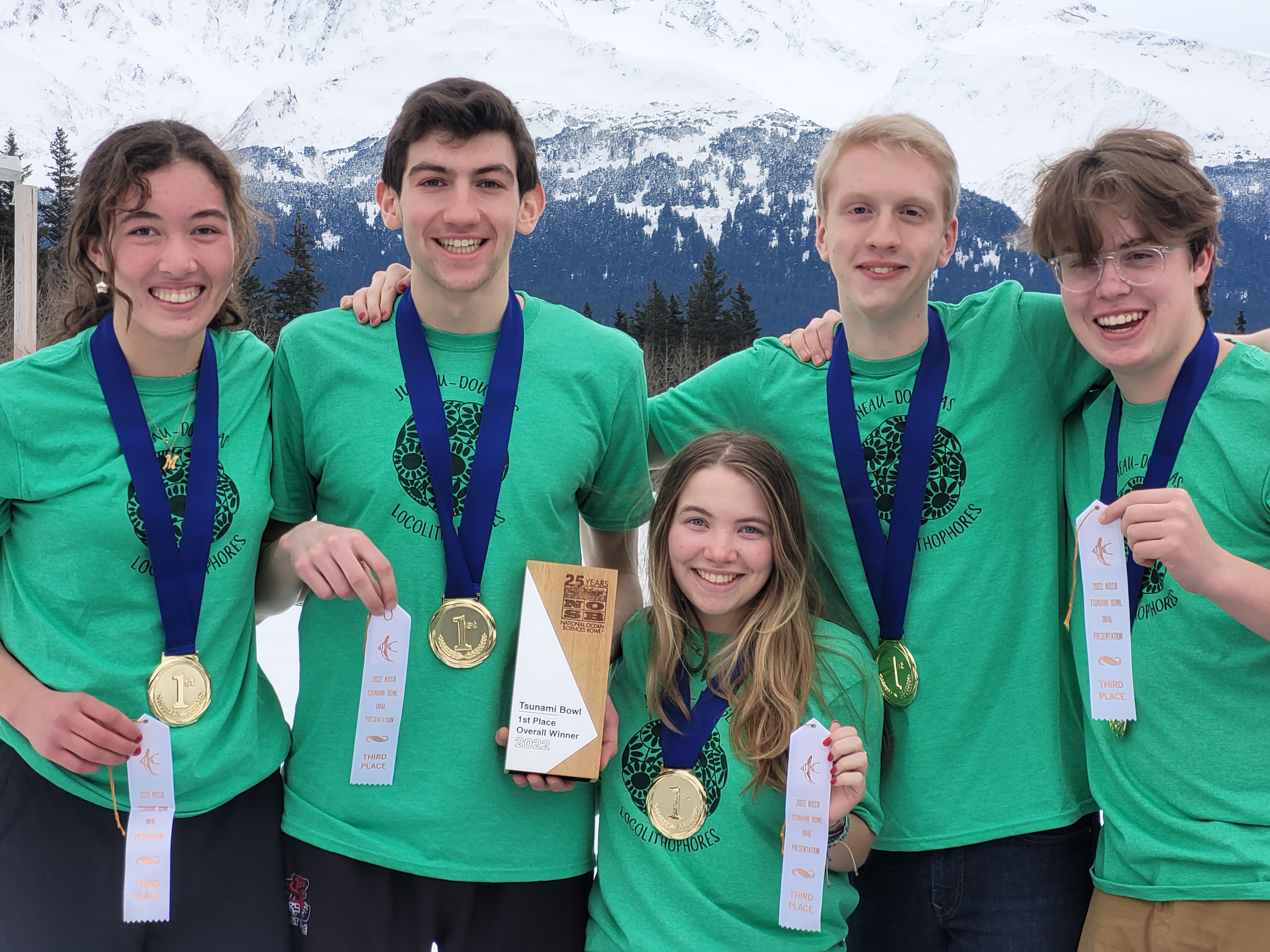 This year’s Tsunami Bowl research project identified solutions to a problem caused by climate change. Team Locolithophores’ winning project identified Juneau’s fossil-fuel dependency as a problem that could be mitigated with hydroelectric technologies in their city’s heating and transportation sectors.