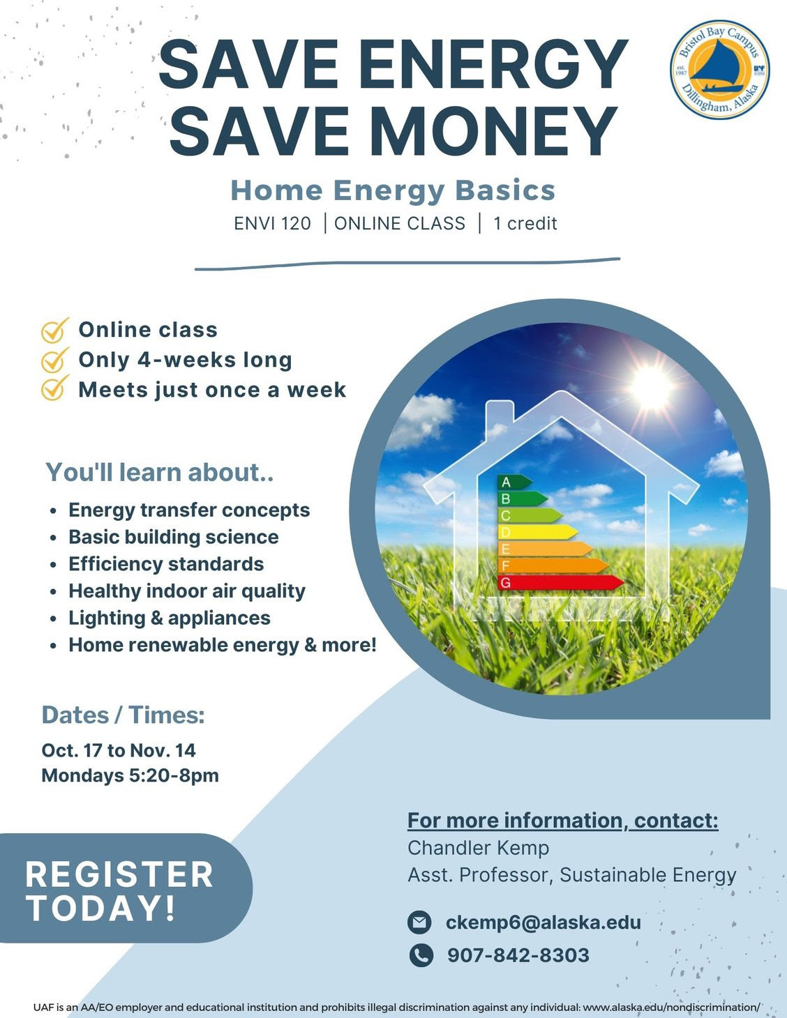 Learn how to save money on your home energy with an online class from UAF Bristol Bay Campus.