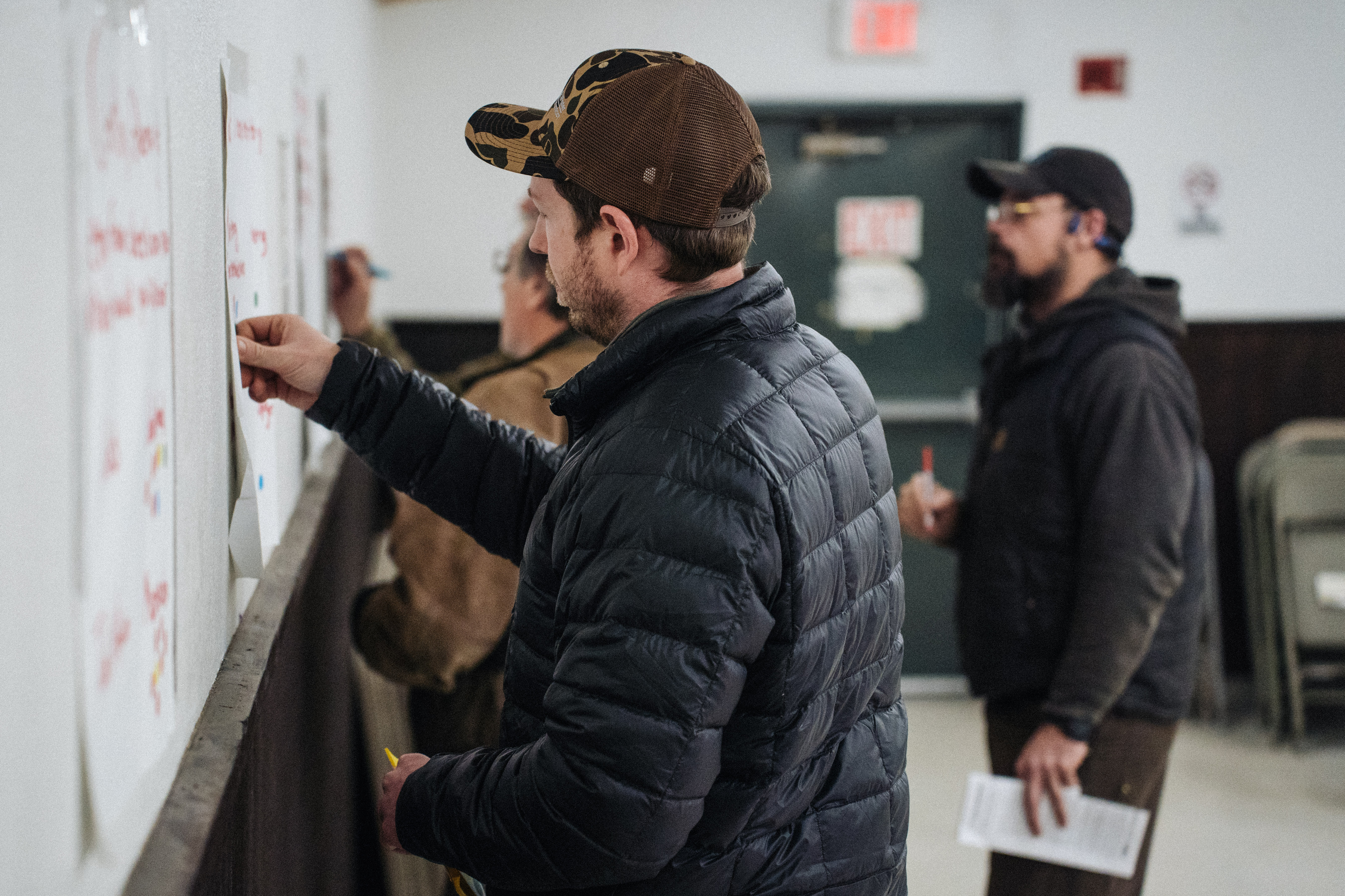 Galena residents participate in a group exercise at the CASES community meeting. Photo by Jeff Fisher.