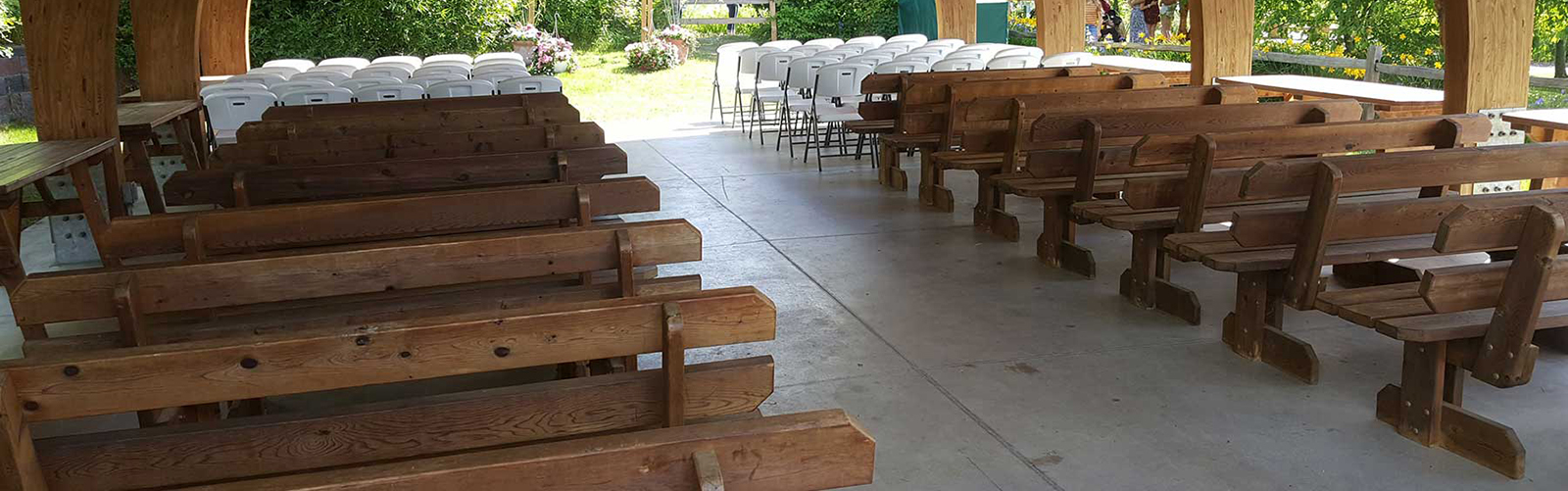 You may bring in your own chairs, tables, etc. Benches in the Pavilion are movable but must be moved back to their original homes after your event.