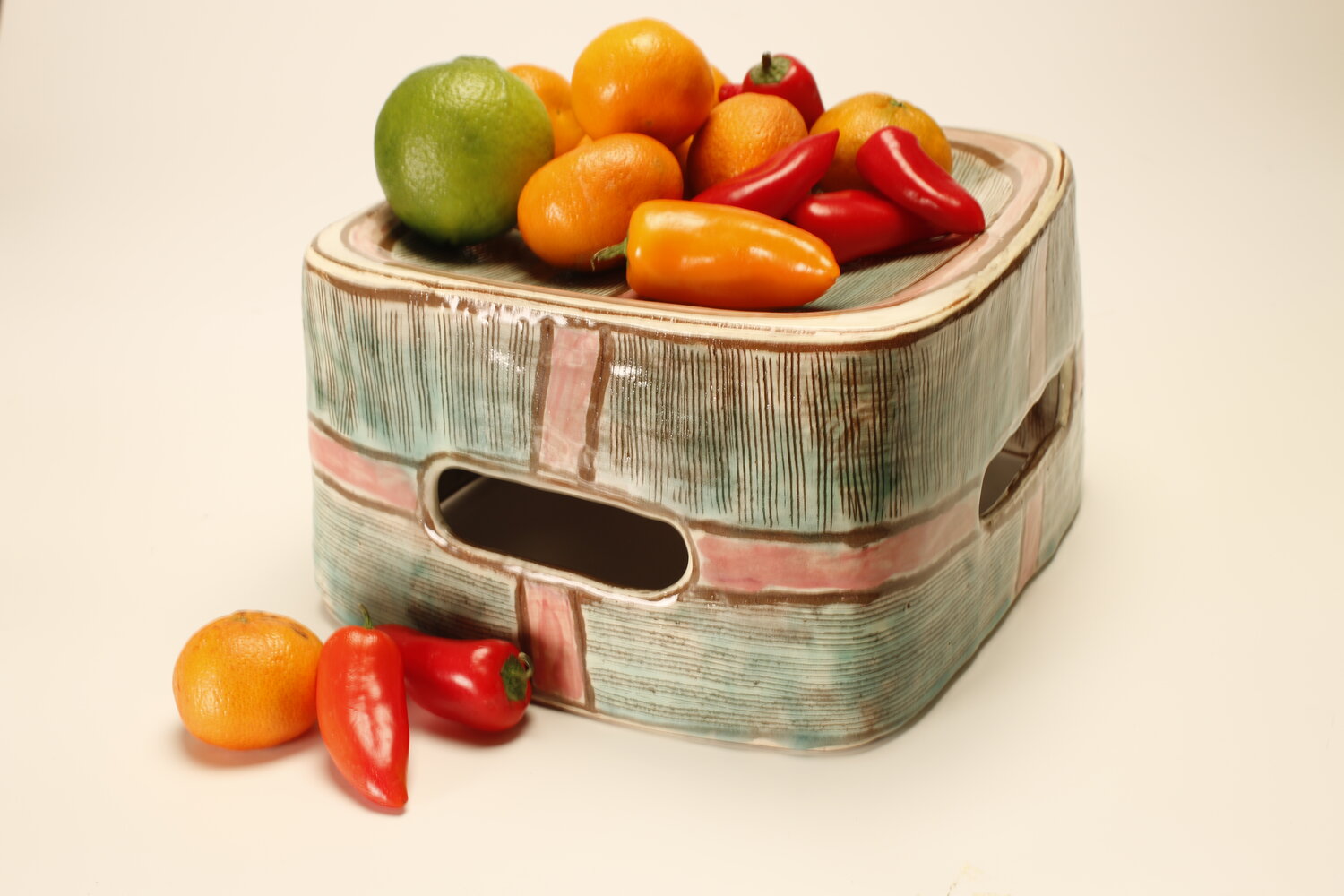 We have a 3500sq ft indoor facility with a complete array of equipment including seven kilns 20+ wheels and three clay mixers. We have a separate outdoor kiln facility at the Experimental Farm that has a large anagama, wood/ salt and fast/fire wood-burning kilns. Graduate studio space is in a separate building. We generally offer five classes per term.