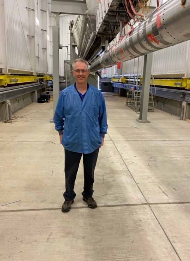 UAF Professor Peter Delamere stands by the KiNET-X rocket.