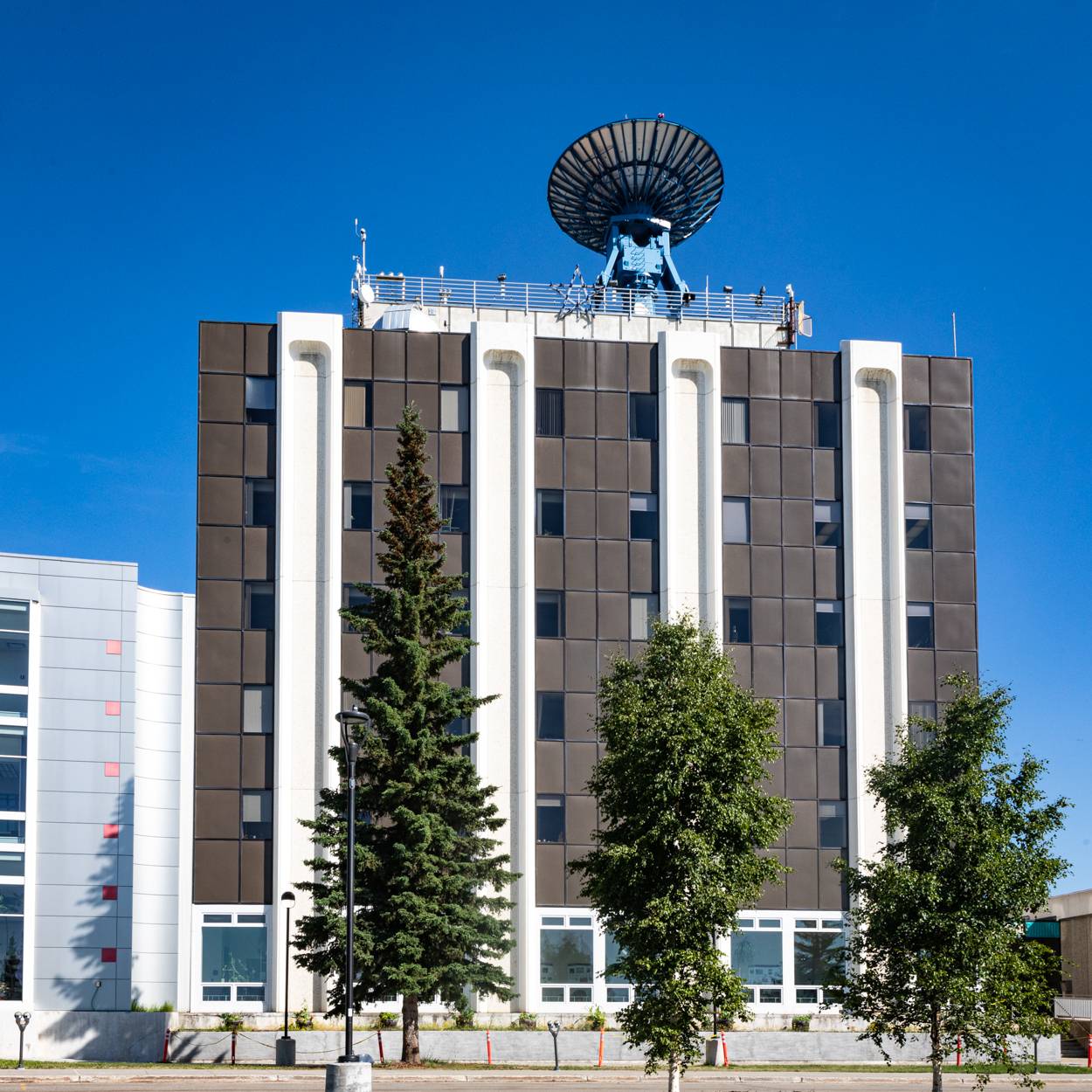 The seven-story C. T. Elvey Building, built in 1970, is home to the Geophysical Institute and contains office and lab spaces.