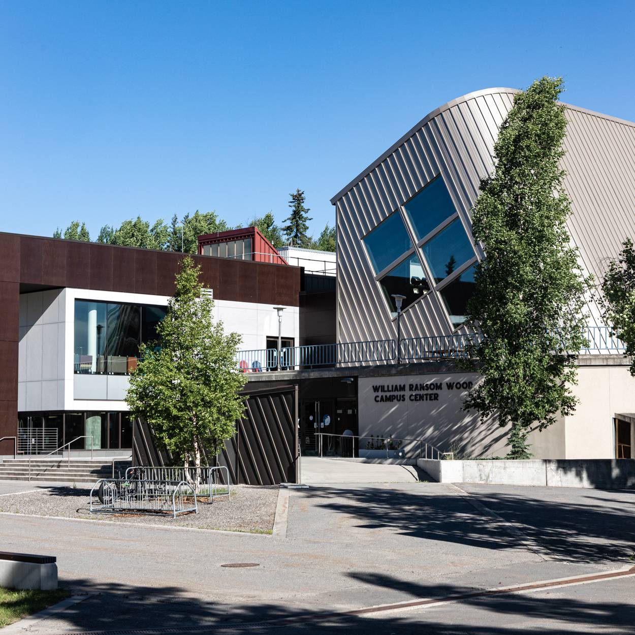 The William Ransom Wood Center was dedicated on Sept. 29, 1972. The building was designed by a UA alumnus to provide students with an antidote to cabin fever. The center features a ballroom and adjoining conference rooms, pool tables, a multilevel lounge, a pub, the Troth Yeddha' campus cafeteria, a coffee shop and additional lunch vendors. Wood Center also has offices for several UAF departments and student organizations.