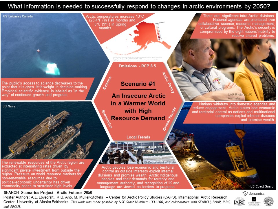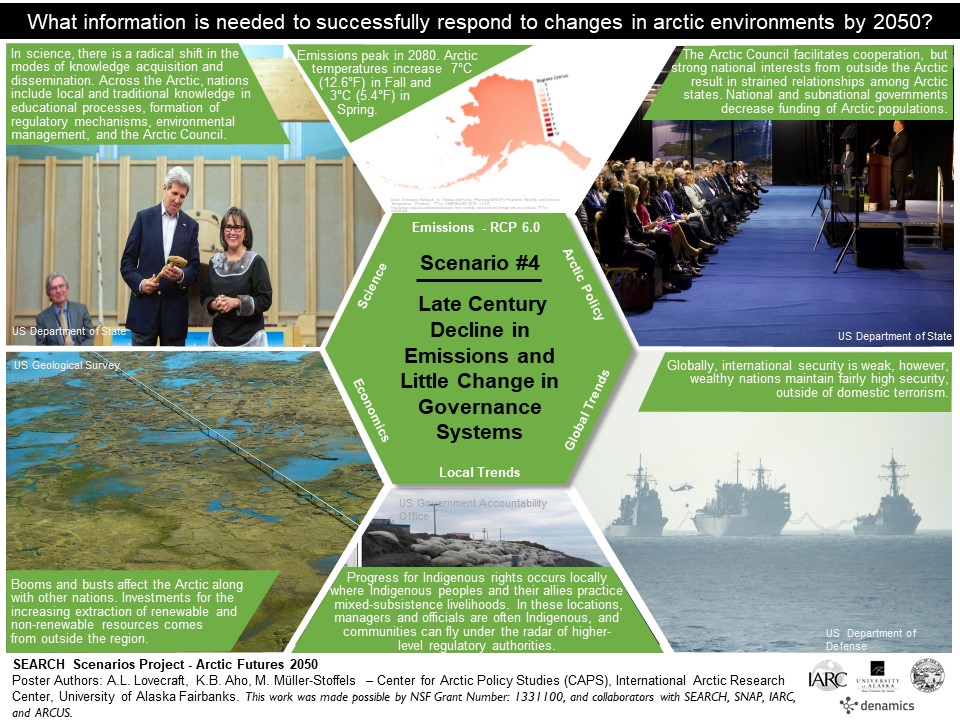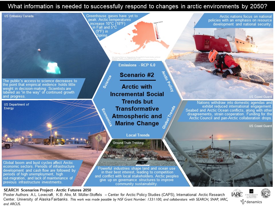 Arctic Futures Scenarios Narrative Report (PDF - 613 KB) Citation: Lovecraft, A. L. 2019. Arctic Futures 2050: Scenarios Narratives. Report on the SEARCH Scenarios Project. Study of Environmental Arctic Change