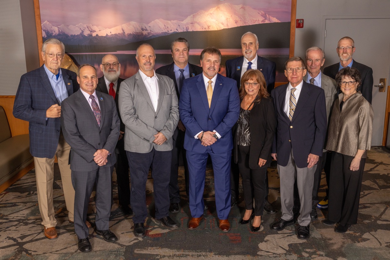 Previous UAF Business Leader of the Year recipients stand together at the 2025 BLOY VIP reception.