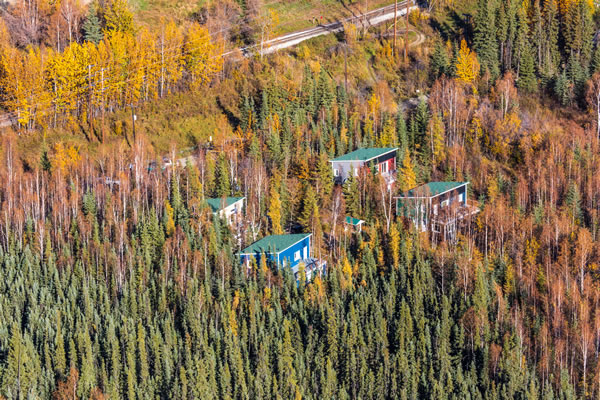The super-insulated buildings were designed by the neighboring Cold Climate Housing Research Center, a nonprofit corporation that studies ways to build efficiently in the North. The construction process emphasized sustainability and only used heavy equipment sparingly.